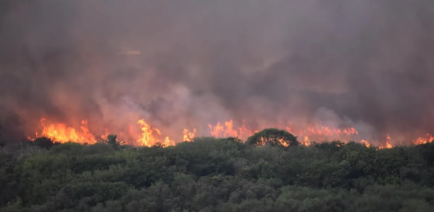 Luego, la Reserva fue desalojada para facilitar el trabajo de los efectivos, mientras se visualizaba desde altura, el fuego en forma de herradura con frente de 500 o 600 metros.