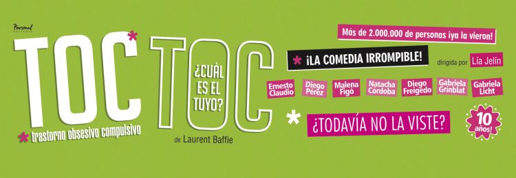 TOC TOC, la comedia más obsesiva y divertida de todas, fue escrita por el autor francés Laurent Baffie. Un espectáculo delirante que conmueve a los espectadores, que ovacionan de pie cada una de sus funciones.